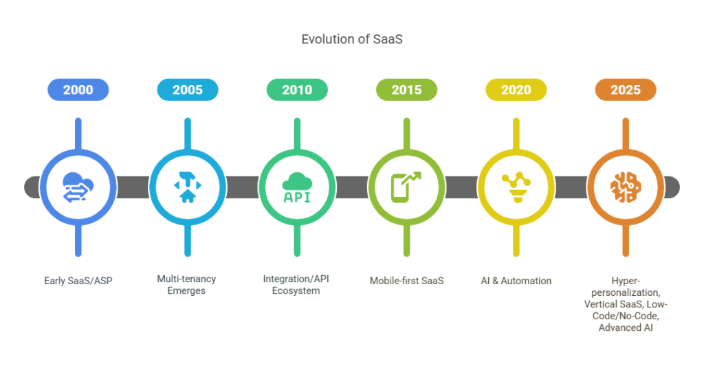 SaaS has evolved dramatically from simple cloud-based applications to sophisticated platforms capable of handling complex business processes. Initially serving basic needs like email hosting, SaaS now offers advanced enterprise-level services, incorporating capabilities such as real-time analytics, artificial intelligence (AI), and complex workflow automation.